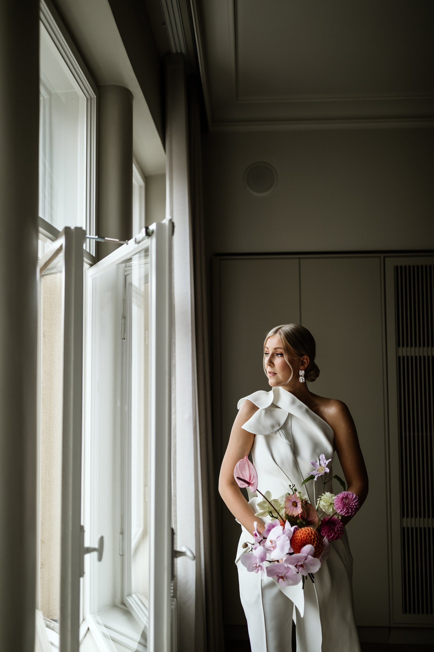 An honourable mention to E’s impeccably tailored outfit, paired with a bouquet we’ll remember forever.